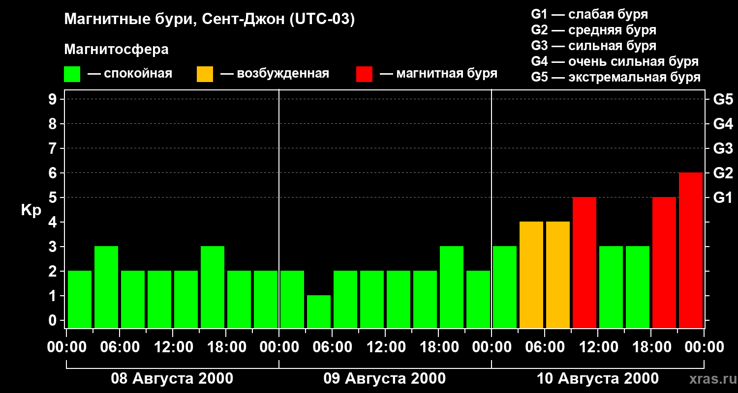 Магнитные бури в Сент-Джоне — 10 августа 2000 года