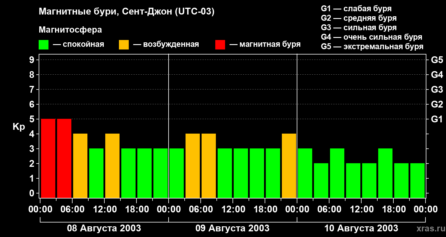 Магнитные бури в Сент-Джоне — 10 августа 2003 года