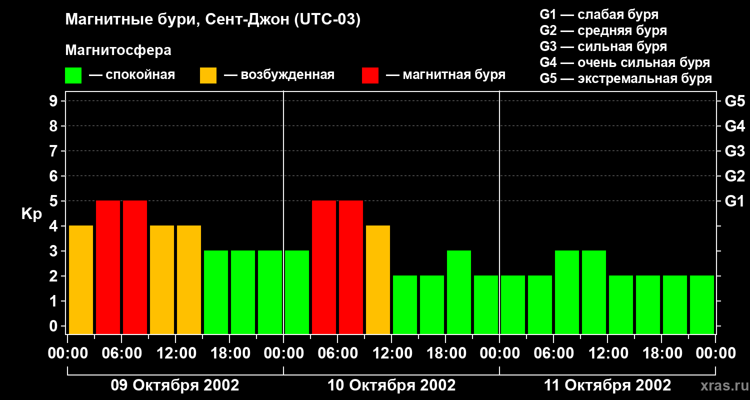 Магнитные бури в Сент-Джоне — 11 октября 2002 года