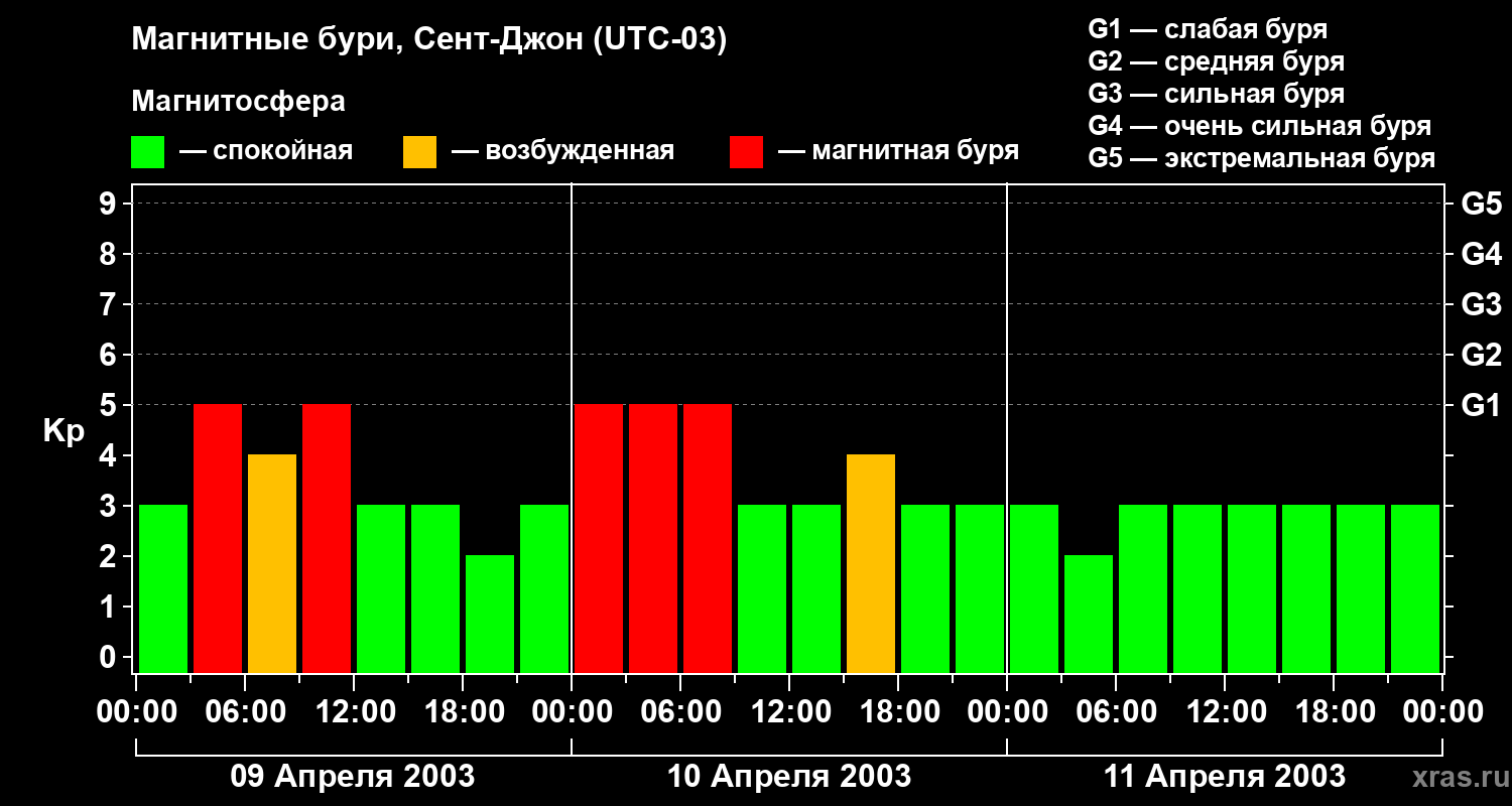 Магнитные бури в Сент-Джоне — 11 апреля 2003 года