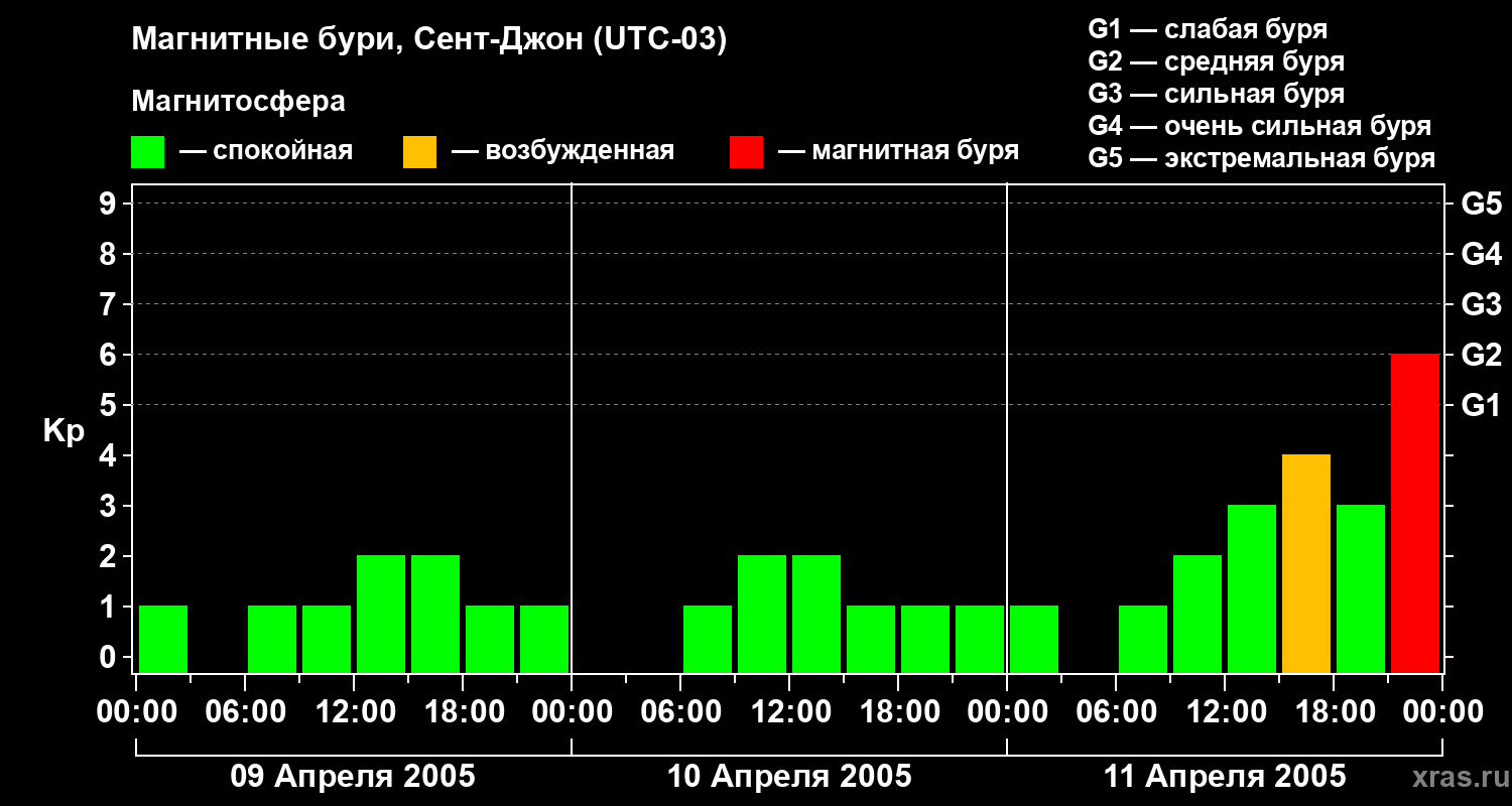Магнитные бури в Сент-Джоне — 11 апреля 2005 года