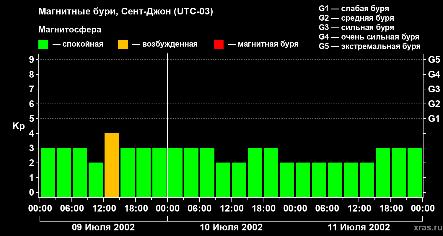 Магнитные бури в Сент-Джоне 11 июля 2002 года