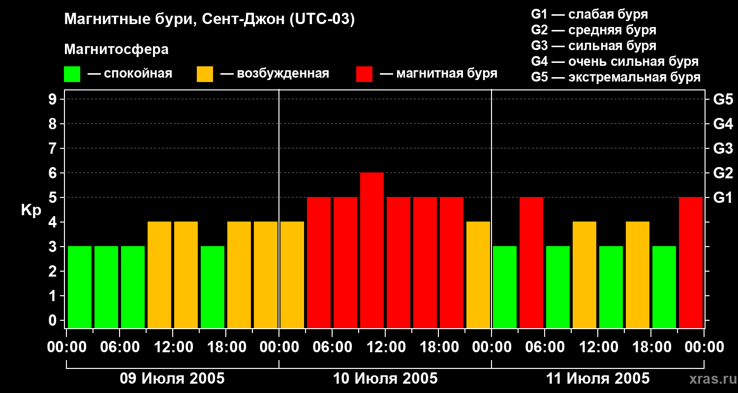 Магнитные бури в Сент-Джоне 11 июля 2005 года