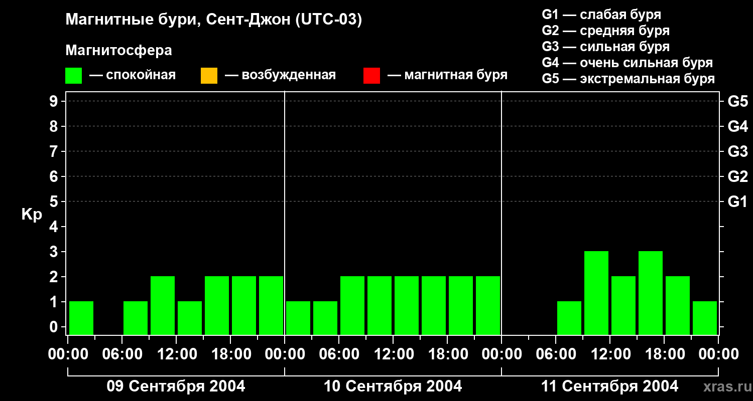Магнитные бури в Сент-Джоне 11 сентября 2004 года