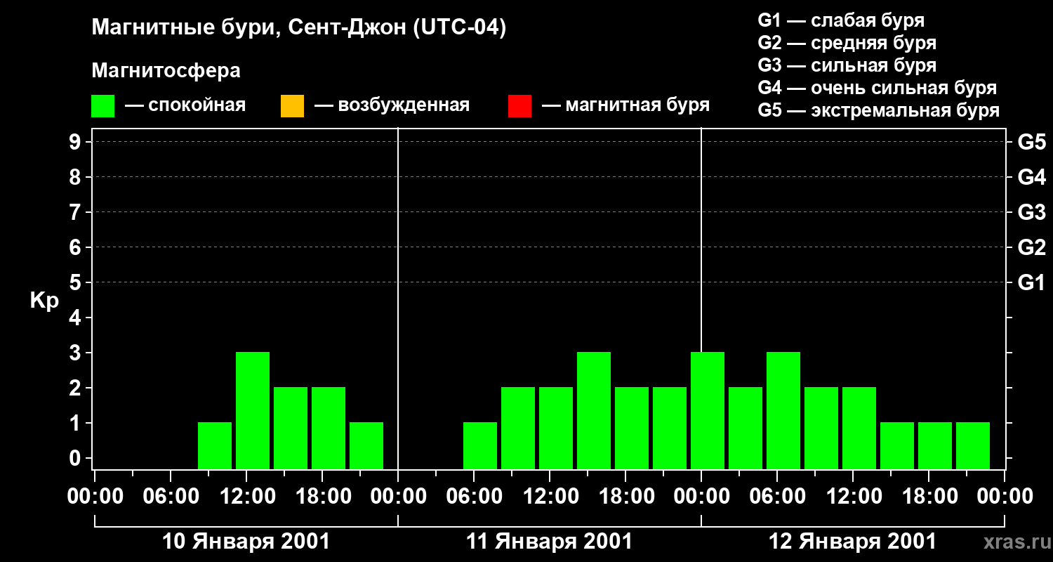Магнитные бури в Сент-Джоне 12 января 2001 года