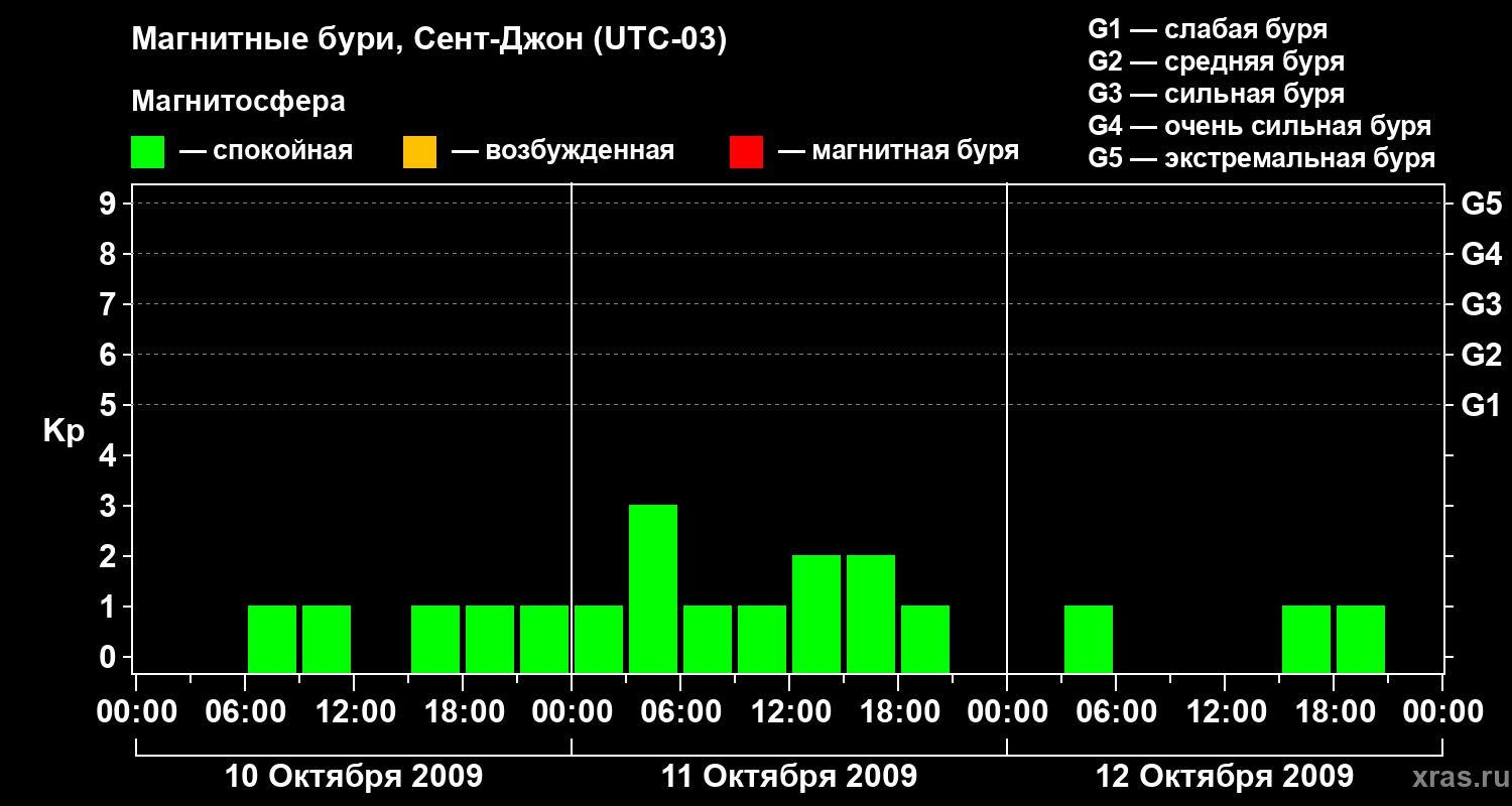 Магнитные бури в Сент-Джоне 12 октября 2009 года