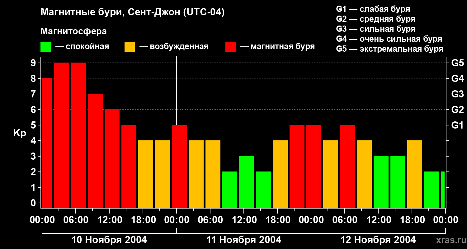 Магнитные бури в Сент-Джоне 12 ноября 2004 года