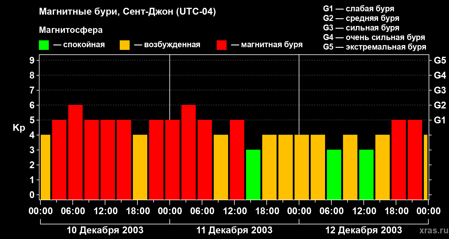 Магнитные бури в Сент-Джоне — 12 декабря 2003 года