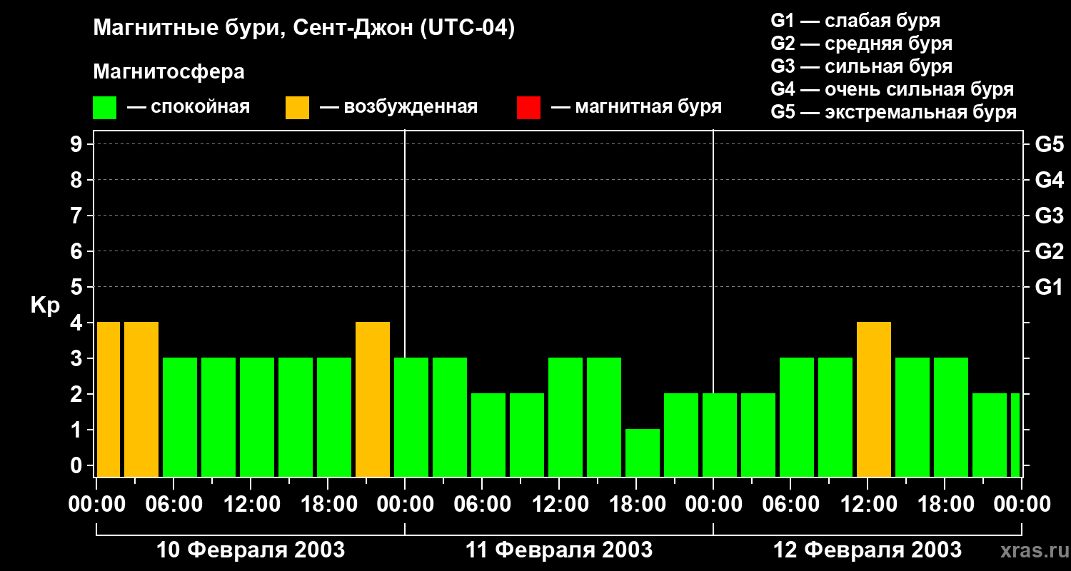 Магнитные бури в Сент-Джоне 12 февраля 2003 года