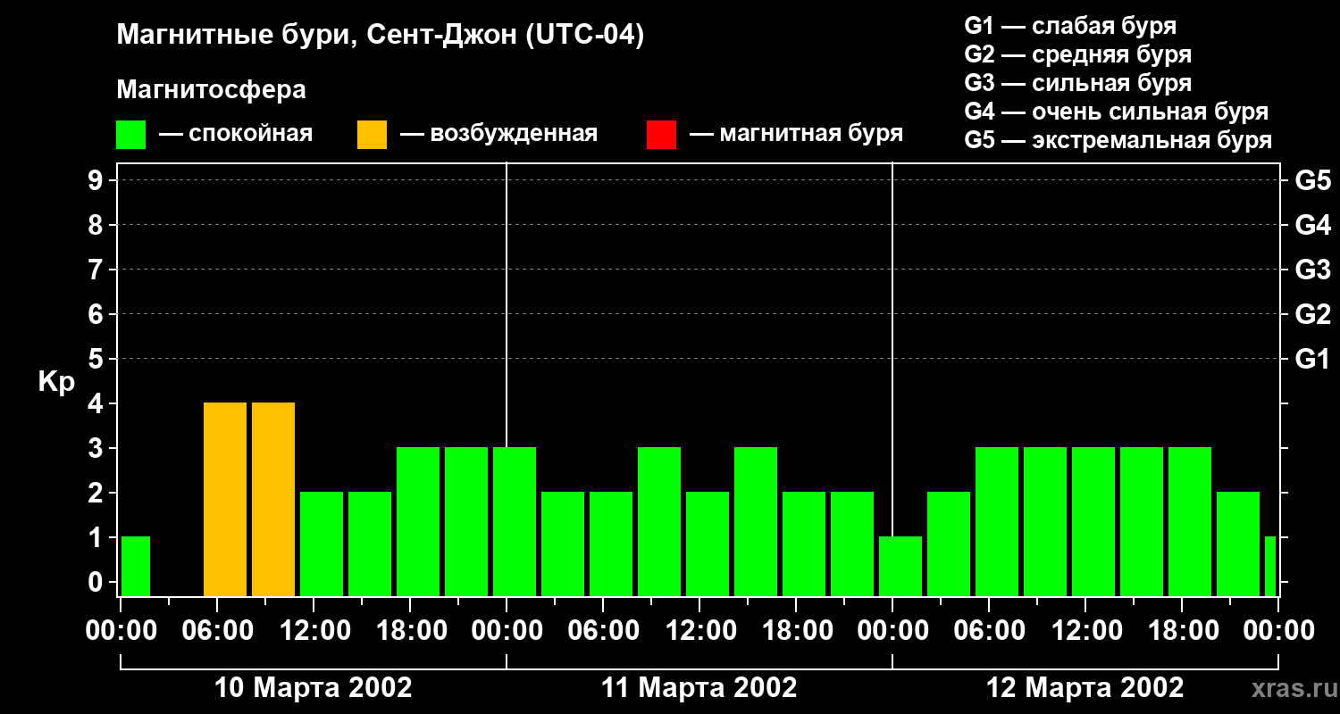 Магнитные бури в Сент-Джоне 12 марта 2002 года