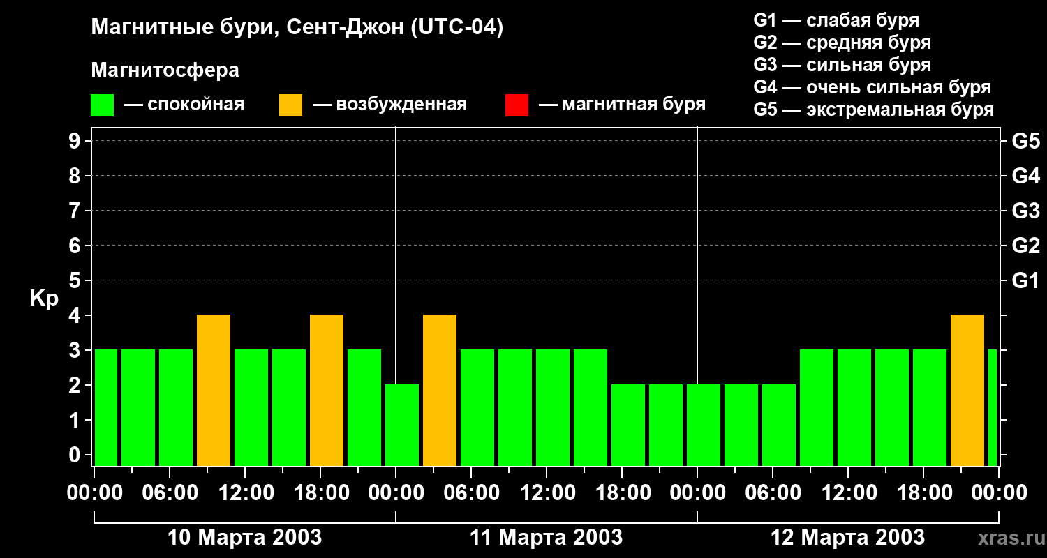 Магнитные бури в Сент-Джоне — 12 марта 2003 года