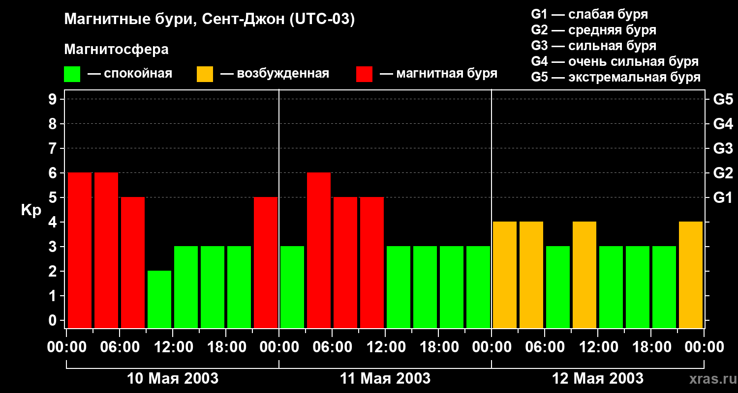 Магнитные бури в Сент-Джоне 12 мая 2003 года