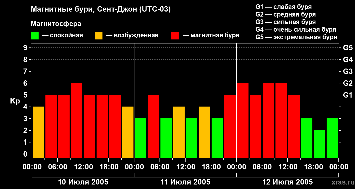 Магнитные бури в Сент-Джоне 12 июля 2005 года