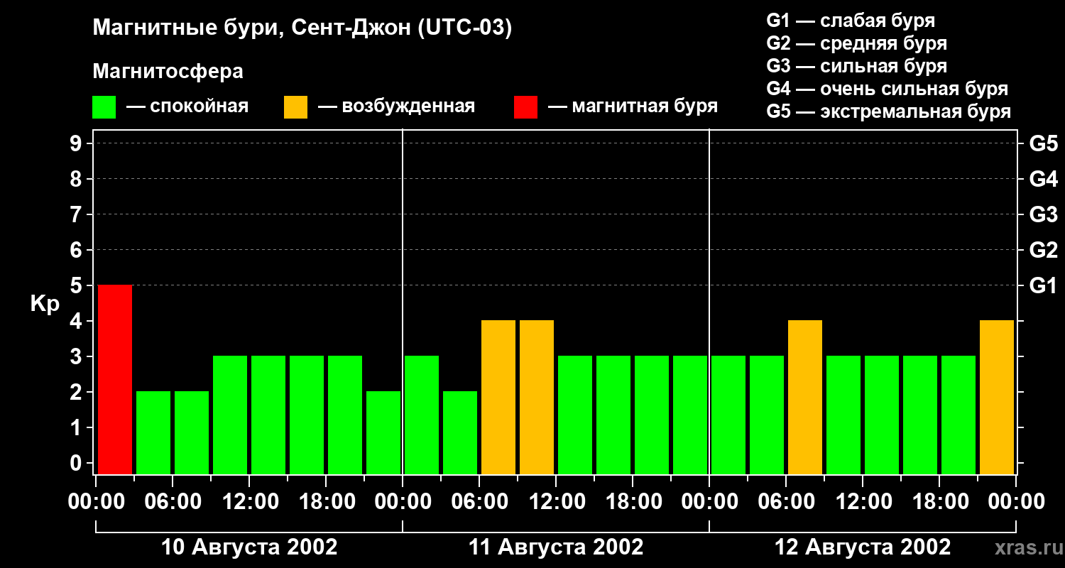 Магнитные бури в Сент-Джоне 12 августа 2002 года