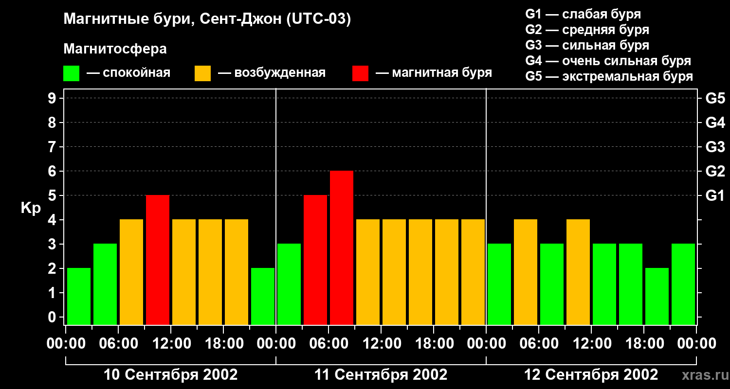Магнитные бури в Сент-Джоне 12 сентября 2002 года