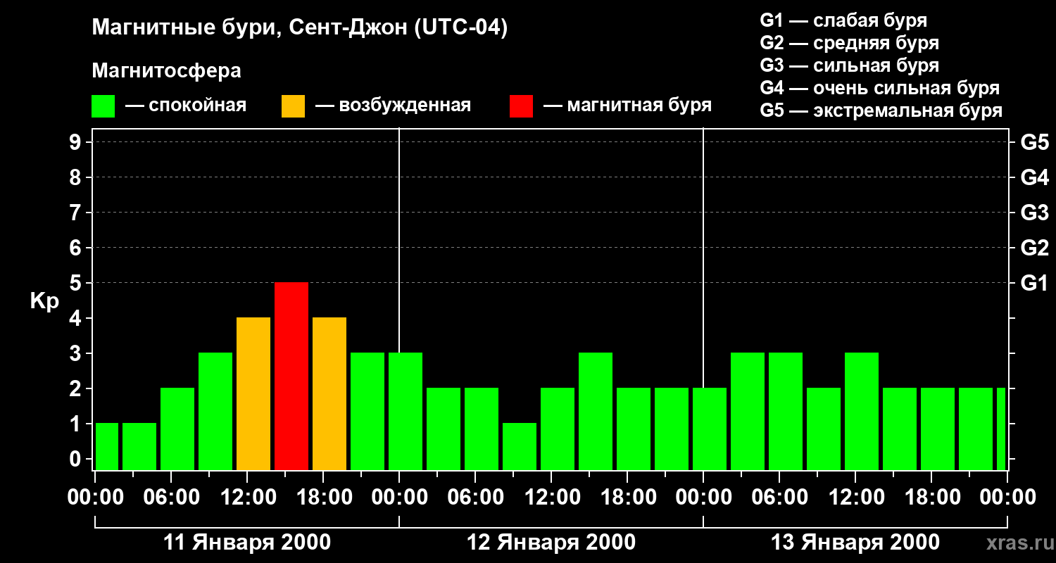 Магнитные бури в Сент-Джоне 13 января 2000 года