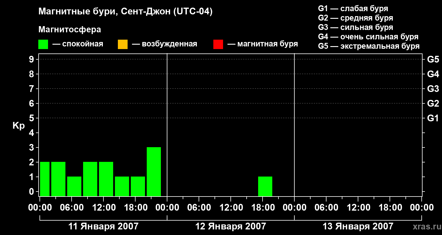 Магнитные бури в Сент-Джоне 13 января 2007 года