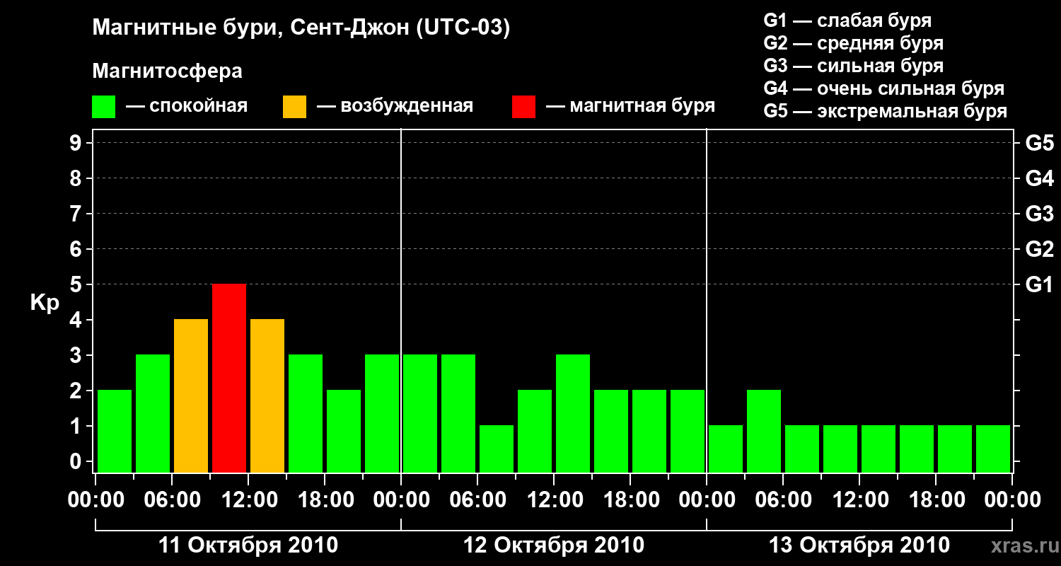 Магнитные бури в Сент-Джоне 13 октября 2010 года