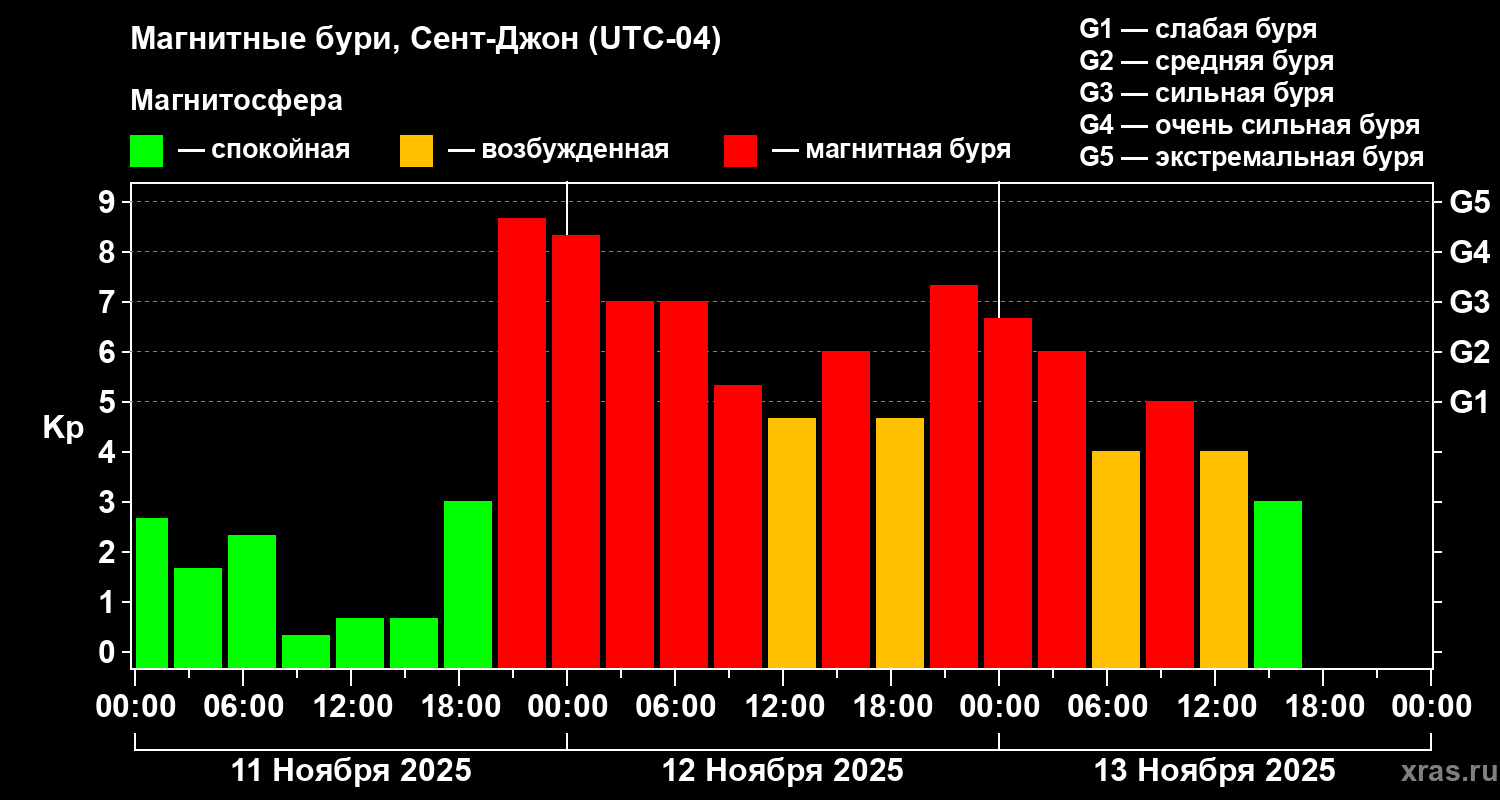 Магнитные бури в Сент-Джоне 13 ноября 2025 года