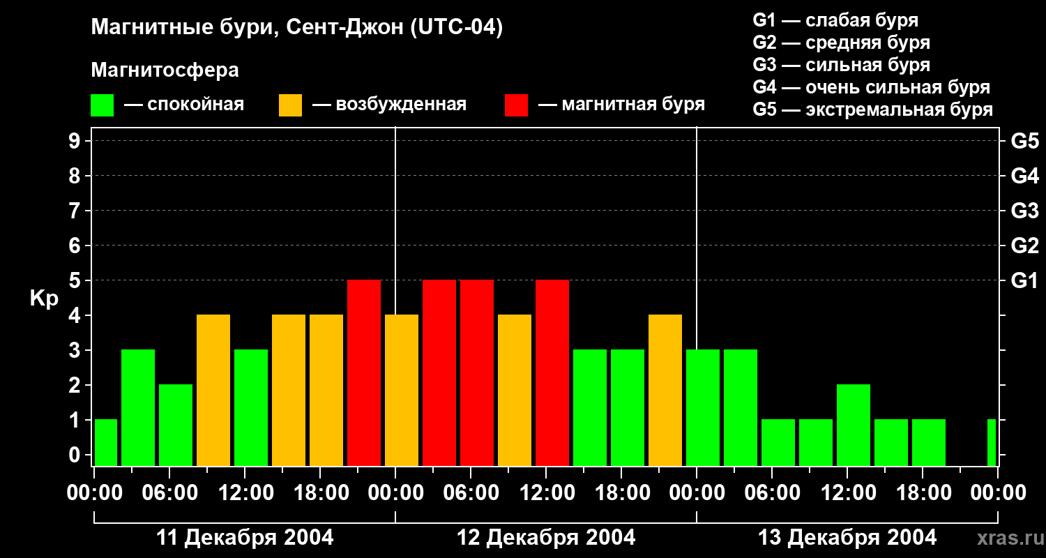 Магнитные бури в Сент-Джоне — 13 декабря 2004 года