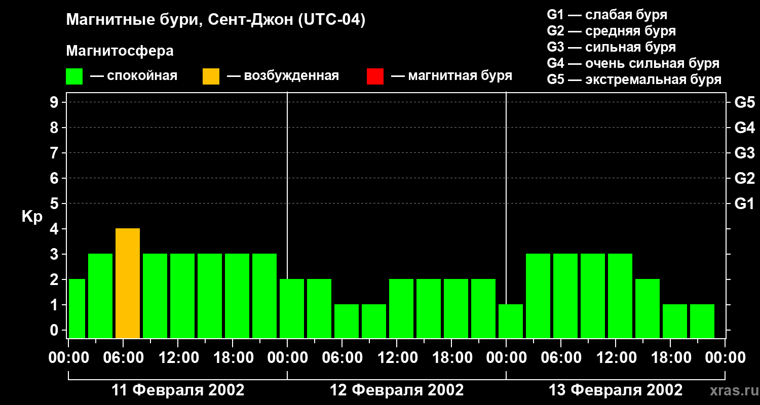 Магнитные бури в Сент-Джоне — 13 февраля 2002 года