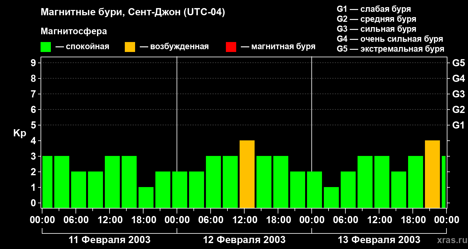 Магнитные бури в Сент-Джоне — 13 февраля 2003 года