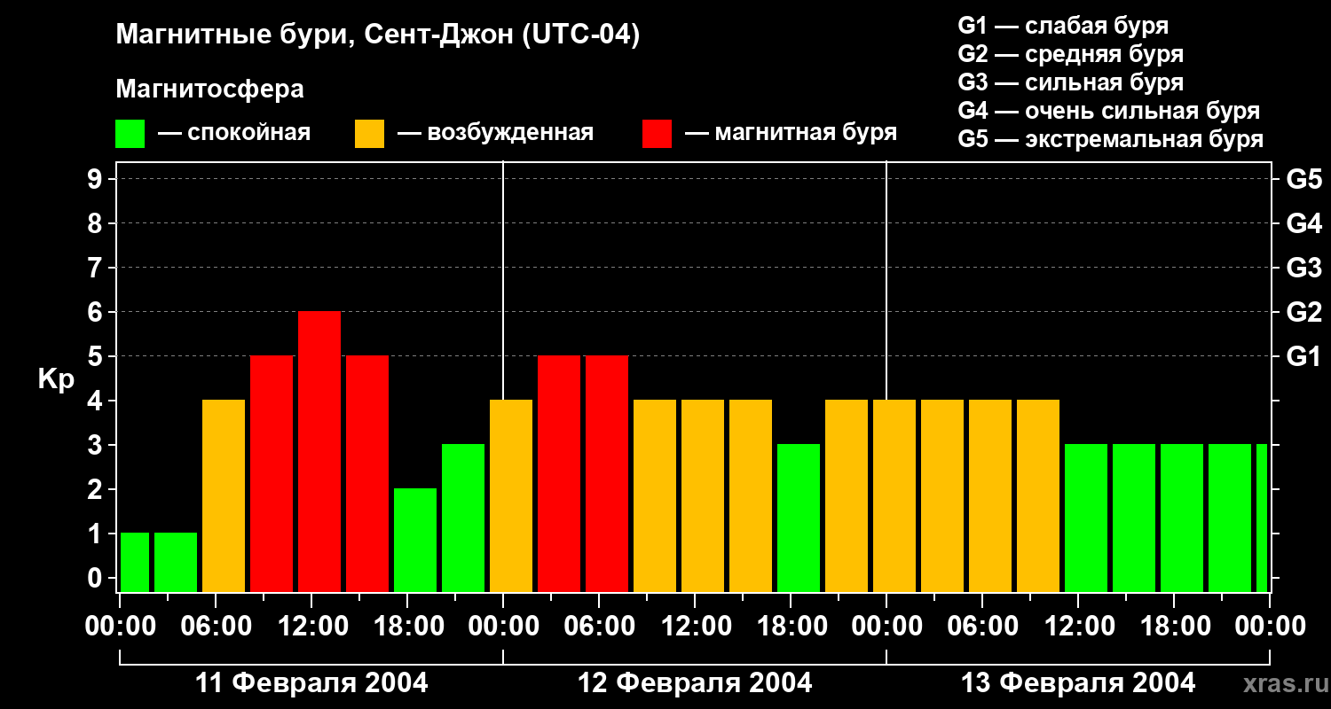 Магнитные бури в Сент-Джоне — 13 февраля 2004 года