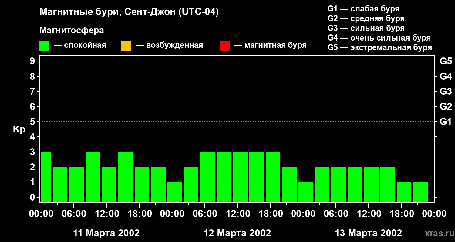 Магнитные бури в Сент-Джоне 13 марта 2002 года