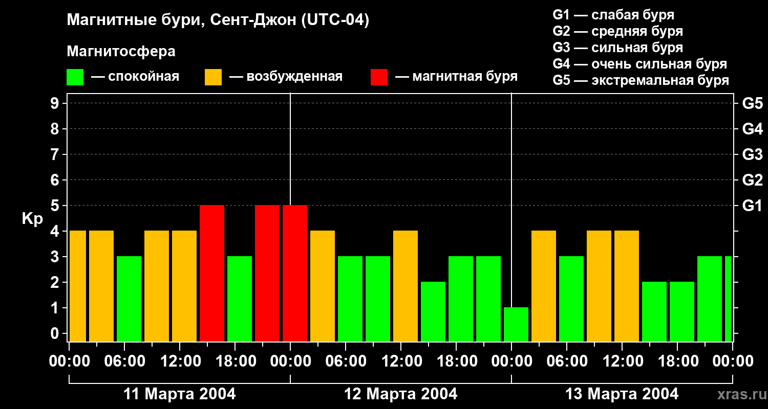 Магнитные бури в Сент-Джоне 13 марта 2004 года