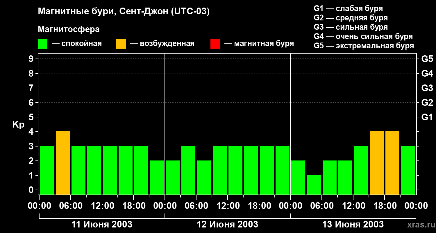 Магнитные бури в Сент-Джоне — 13 июня 2003 года