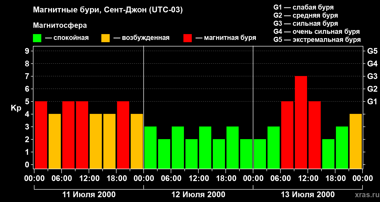 Магнитные бури в Сент-Джоне 13 июля 2000 года
