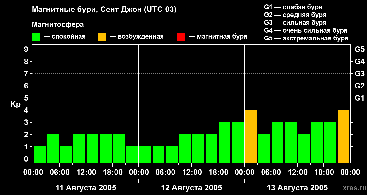 Магнитные бури в Сент-Джоне 13 августа 2005 года