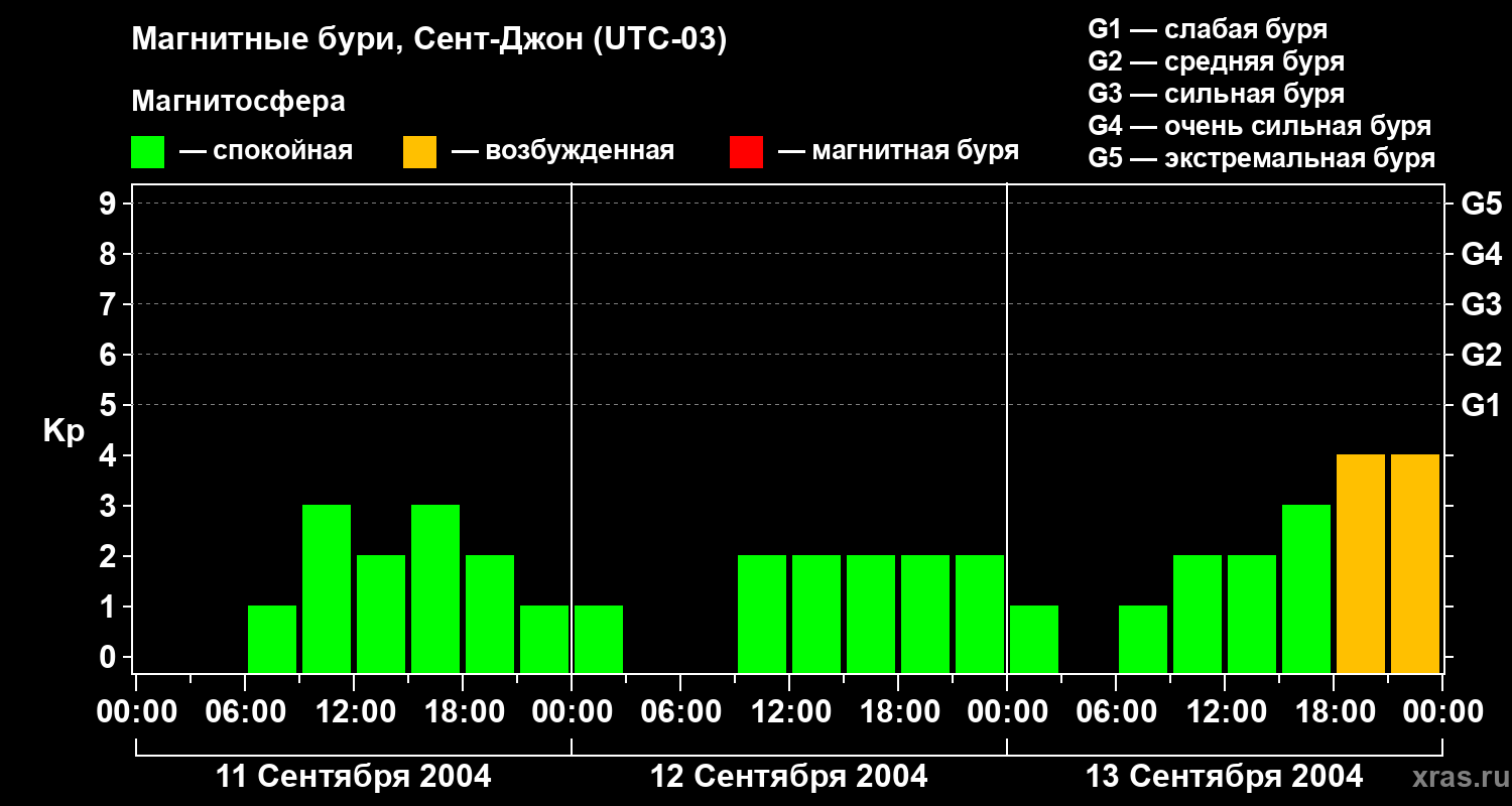 Магнитные бури в Сент-Джоне — 13 сентября 2004 года