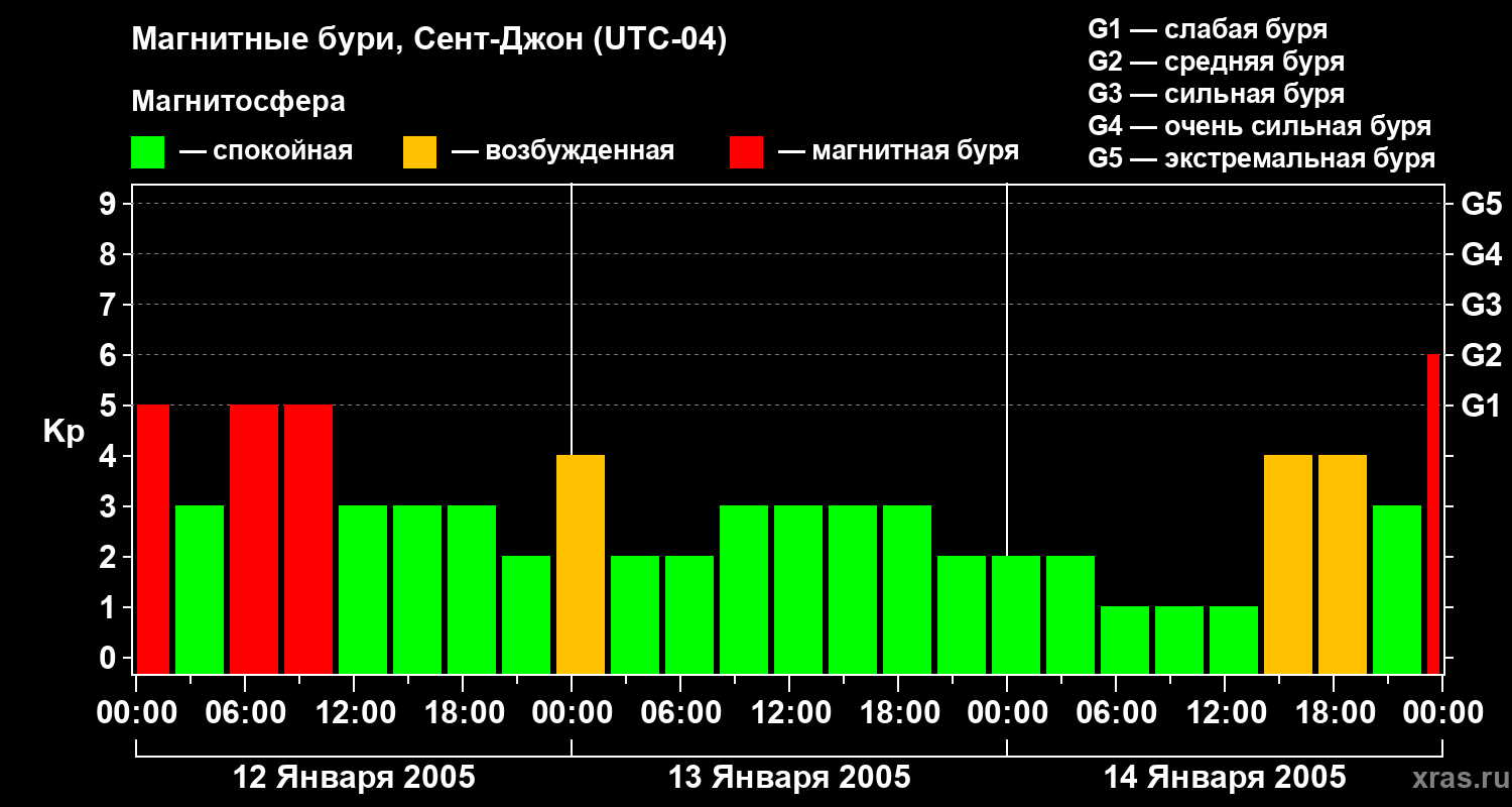 Магнитные бури в Сент-Джоне 14 января 2005 года