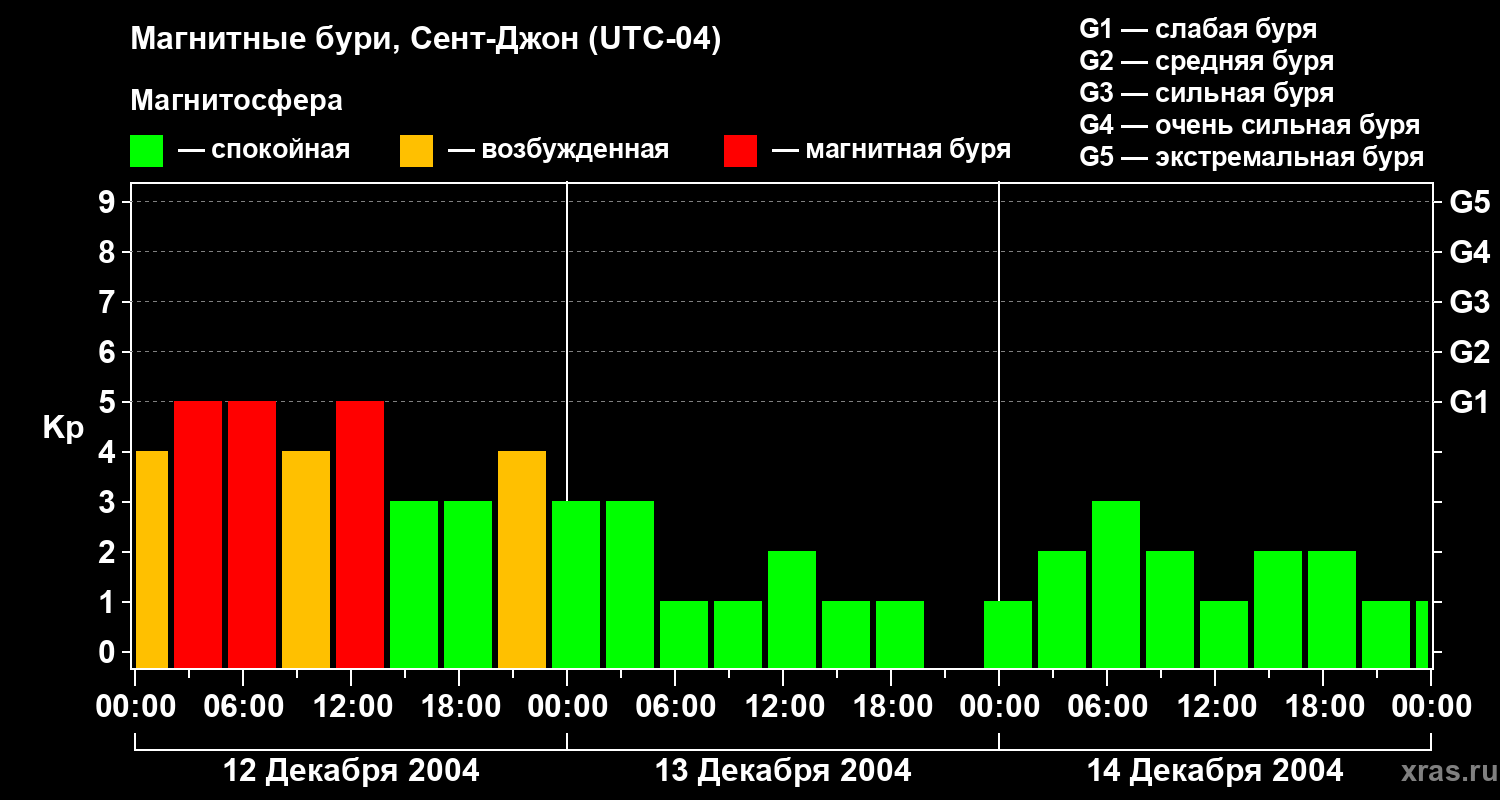 Магнитные бури в Сент-Джоне — 14 декабря 2004 года