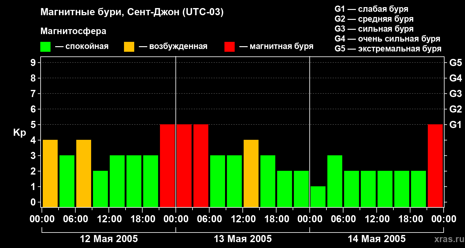 Магнитные бури в Сент-Джоне — 14 мая 2005 года