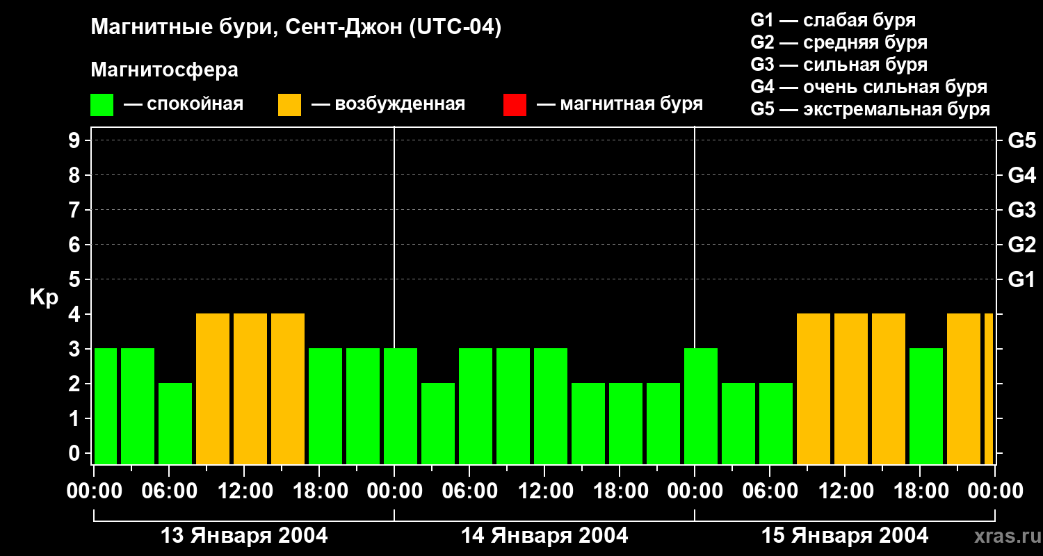 Магнитные бури в Сент-Джоне — 15 января 2004 года