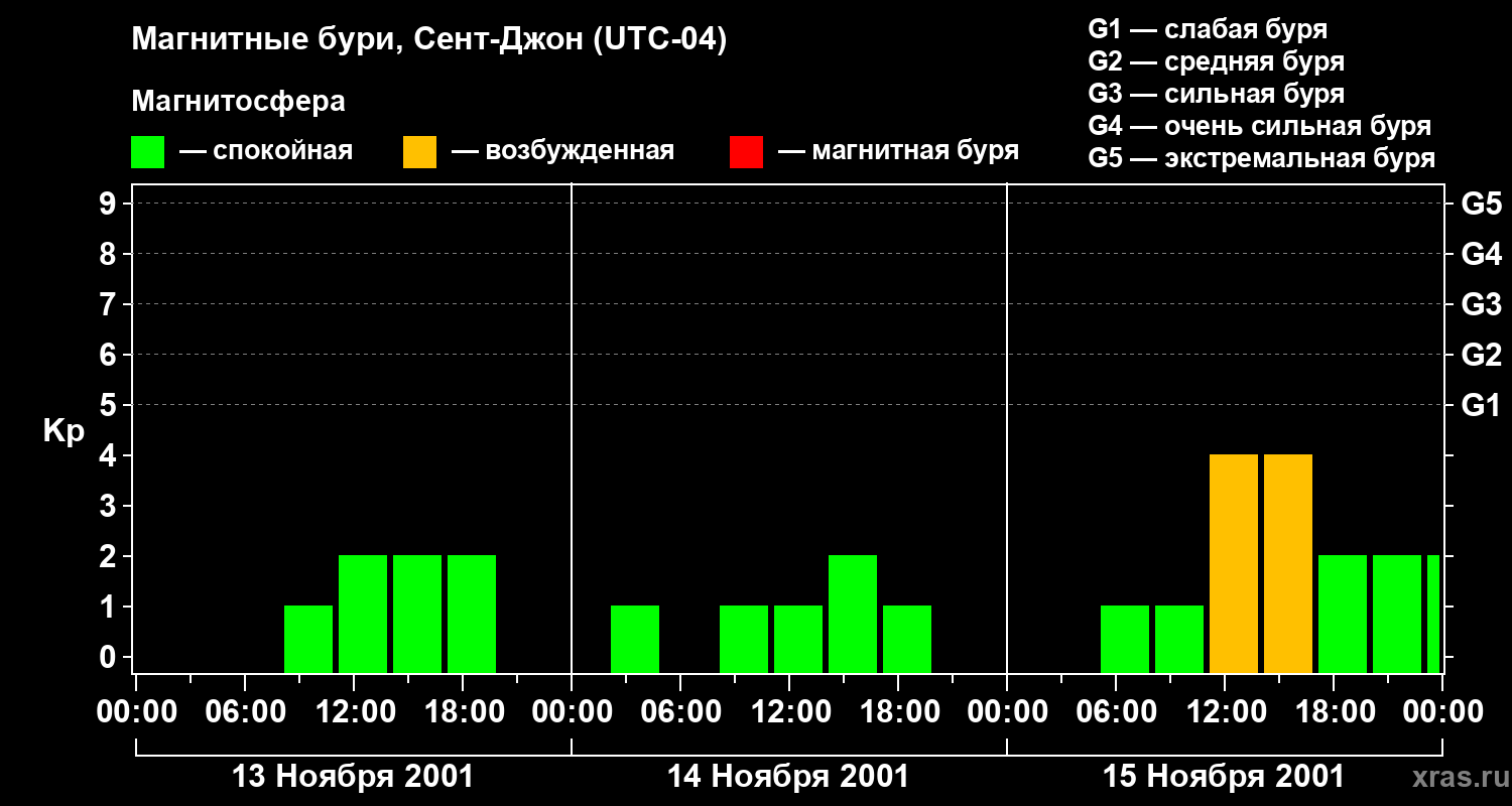 Магнитные бури в Сент-Джоне — 15 ноября 2001 года