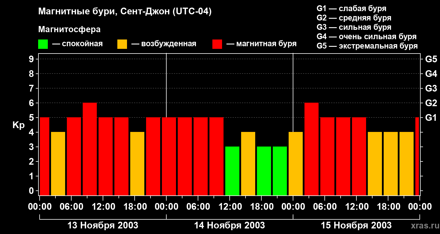 Магнитные бури в Сент-Джоне — 15 ноября 2003 года