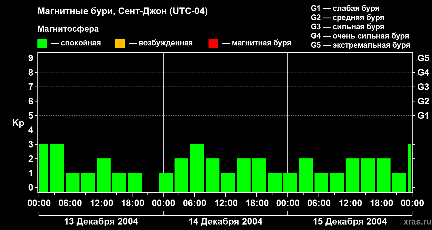 Магнитные бури в Сент-Джоне — 15 декабря 2004 года