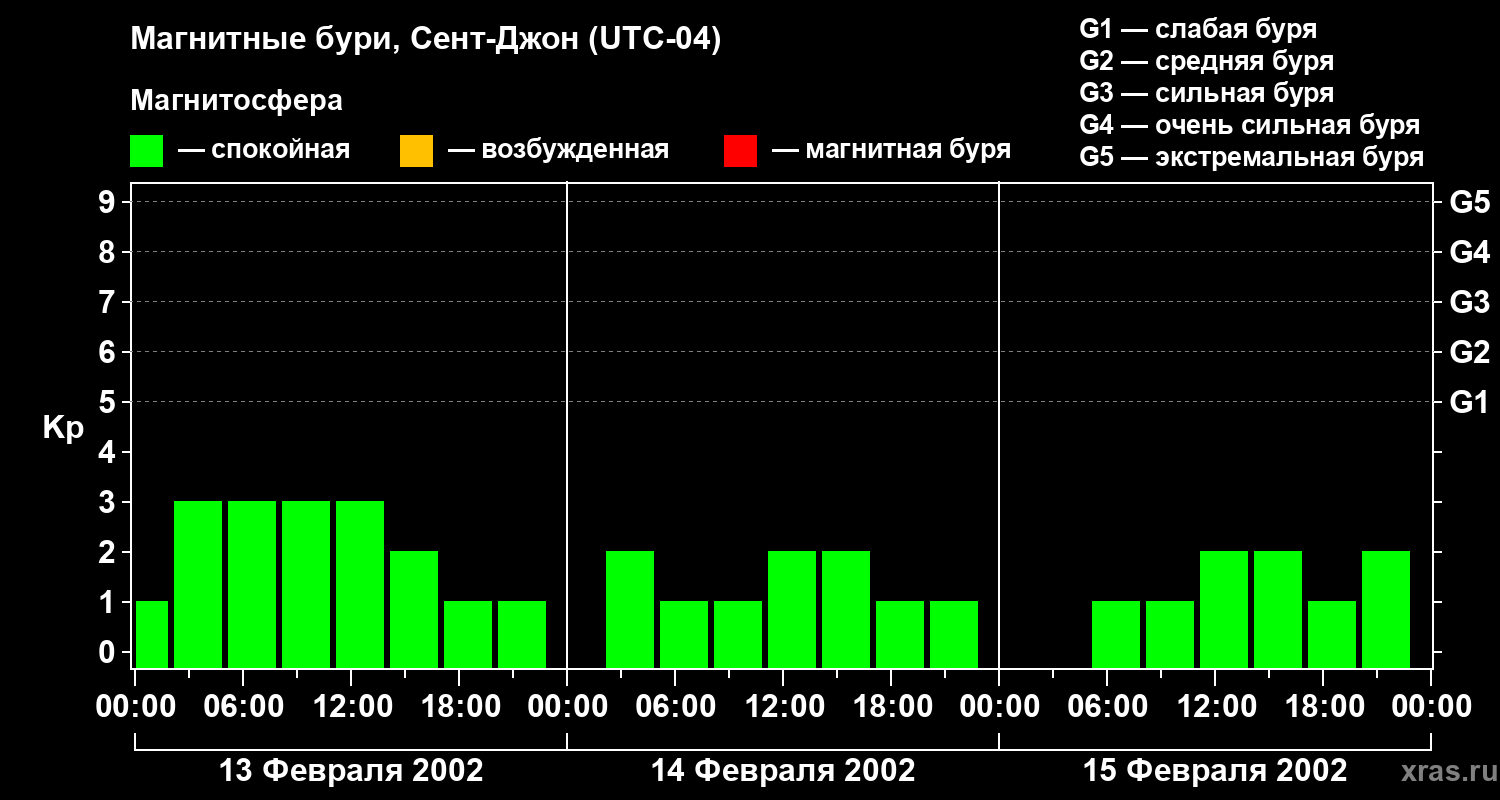 Магнитные бури в Сент-Джоне — 15 февраля 2002 года