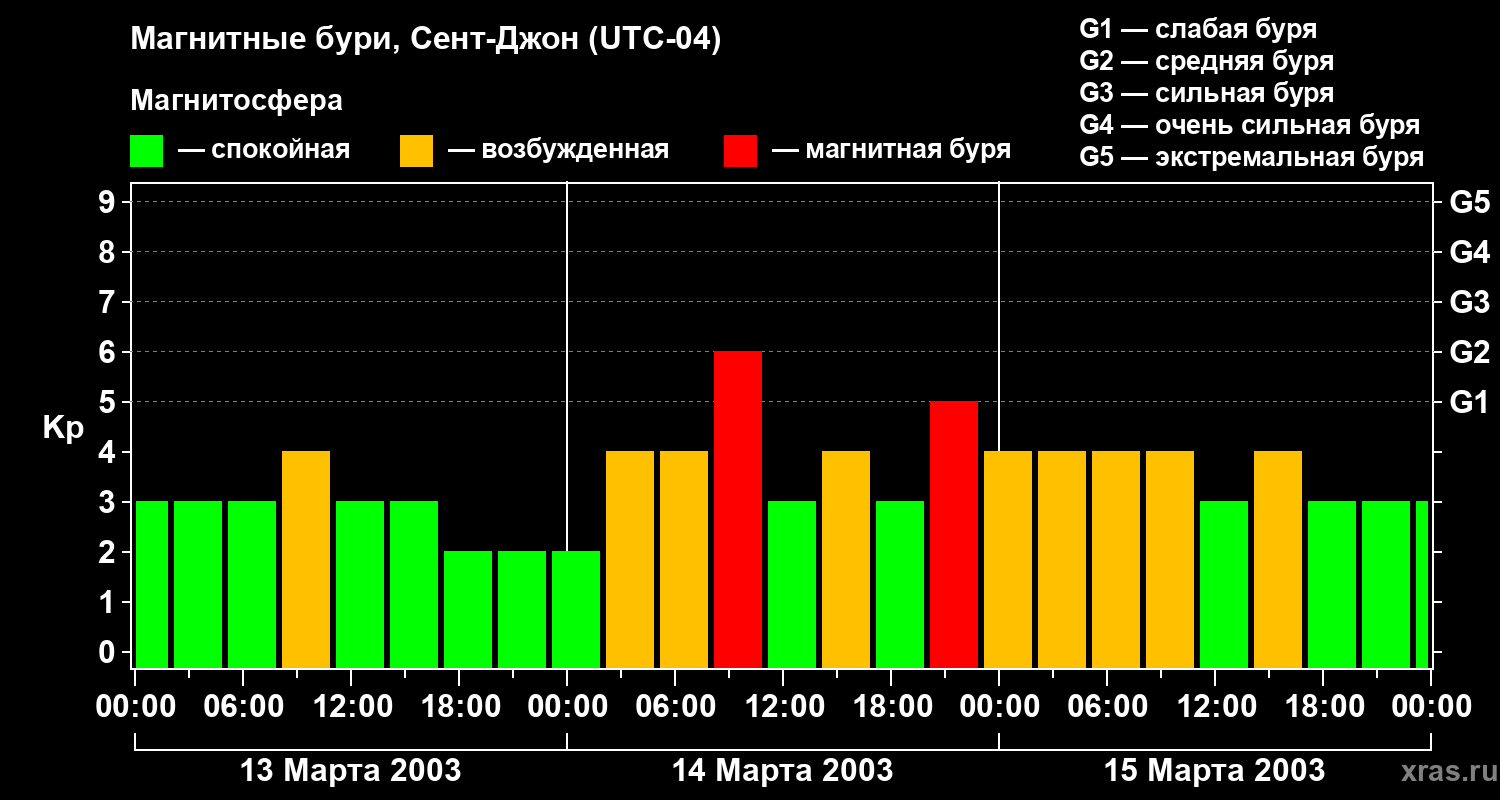 Магнитные бури в Сент-Джоне — 15 марта 2003 года