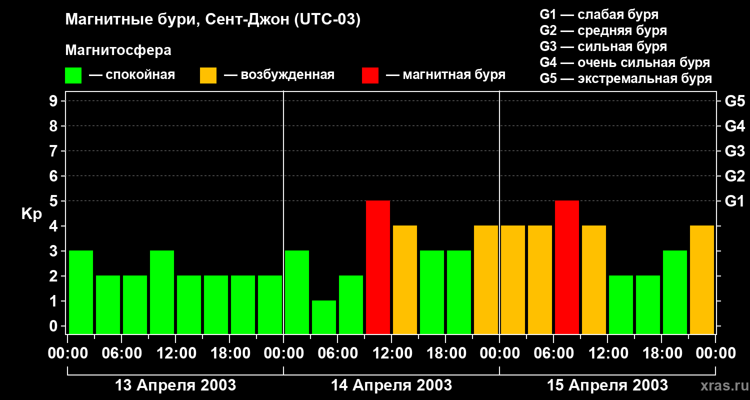 Магнитные бури в Сент-Джоне — 15 апреля 2003 года