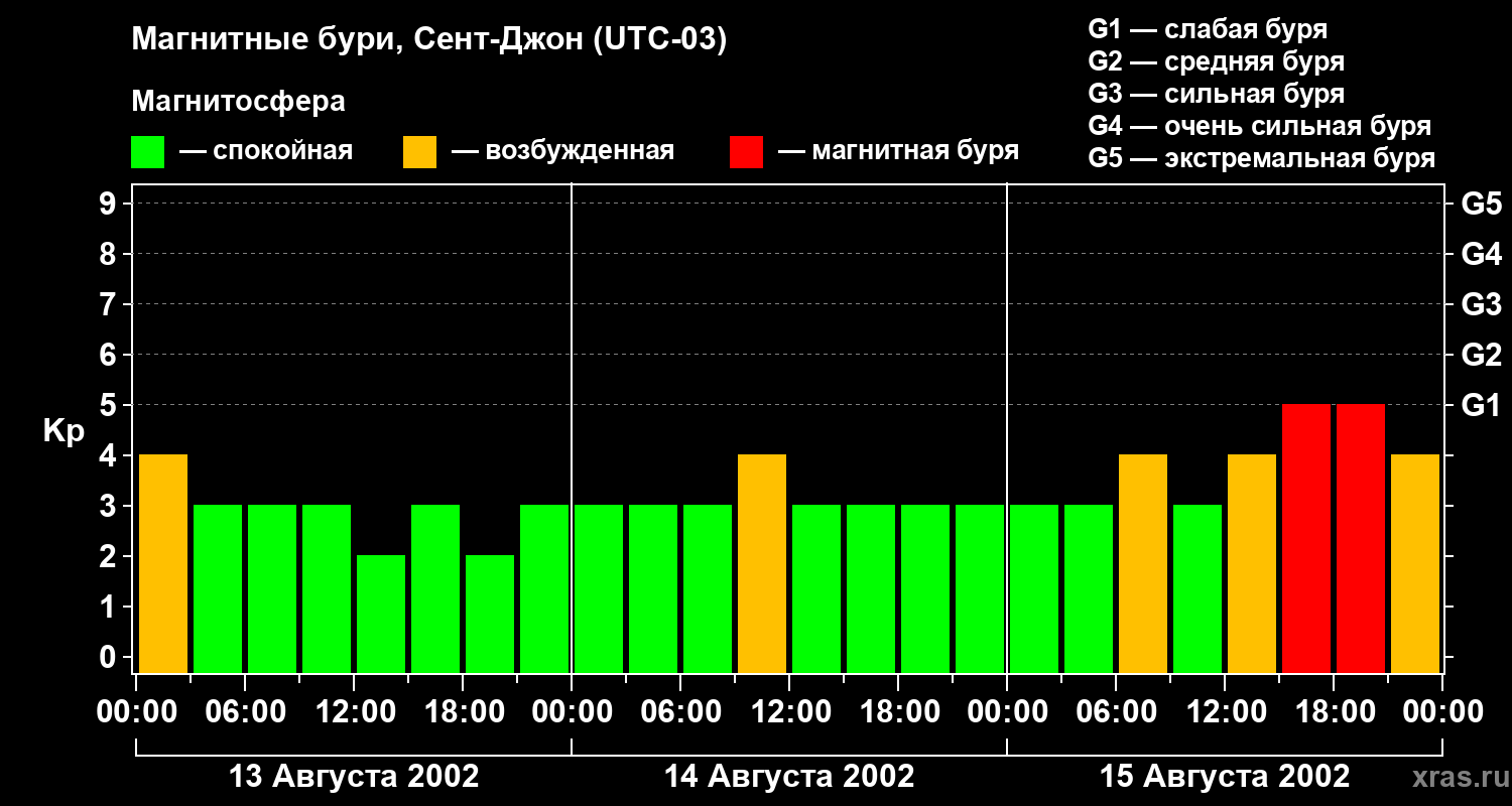 Магнитные бури в Сент-Джоне 15 августа 2002 года