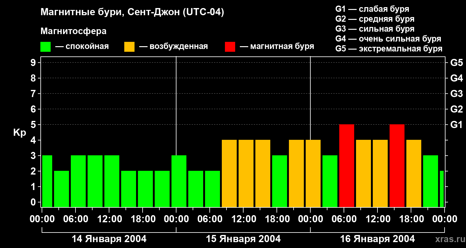 Магнитные бури в Сент-Джоне 16 января 2004 года
