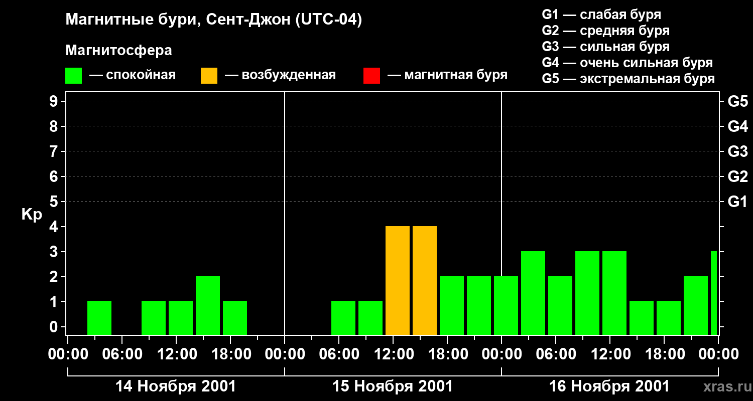 Магнитные бури в Сент-Джоне — 16 ноября 2001 года