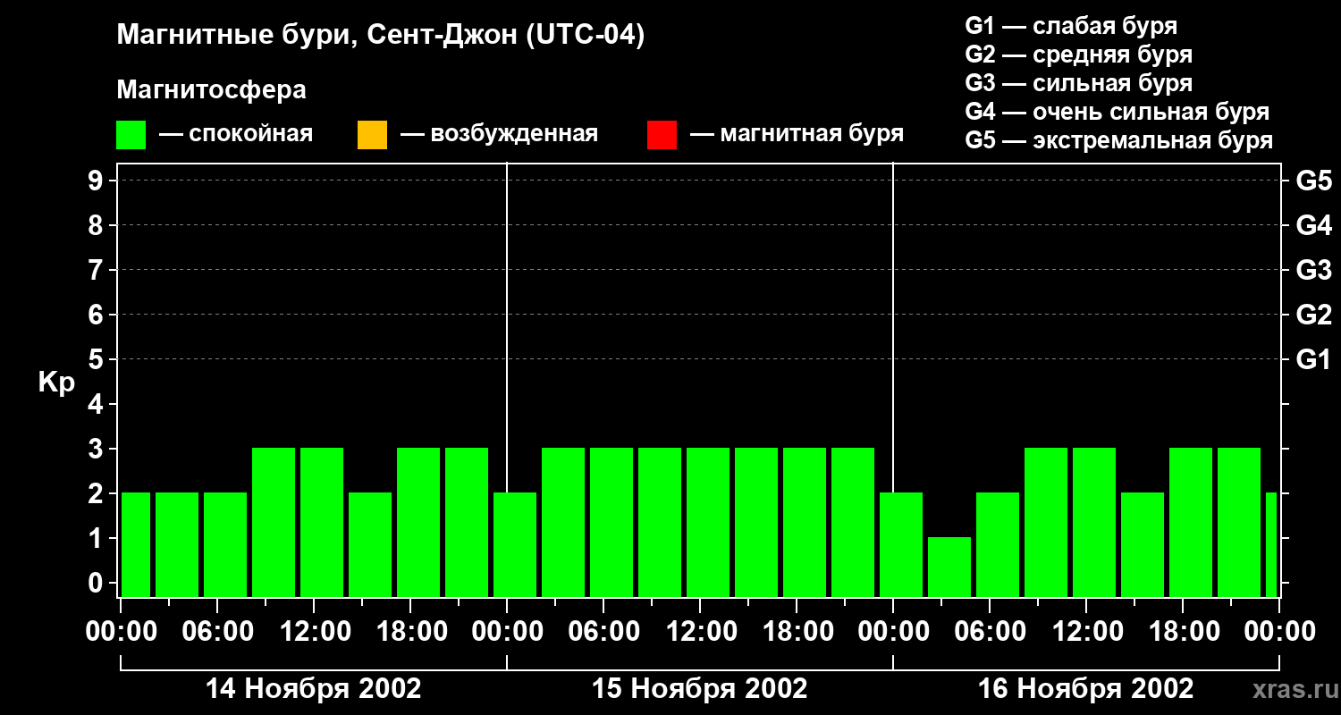 Магнитные бури в Сент-Джоне — 16 ноября 2002 года