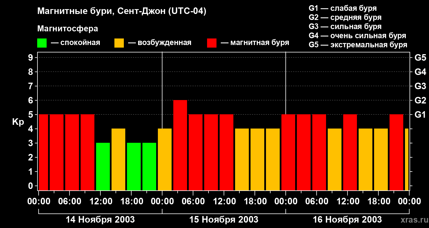 Магнитные бури в Сент-Джоне — 16 ноября 2003 года