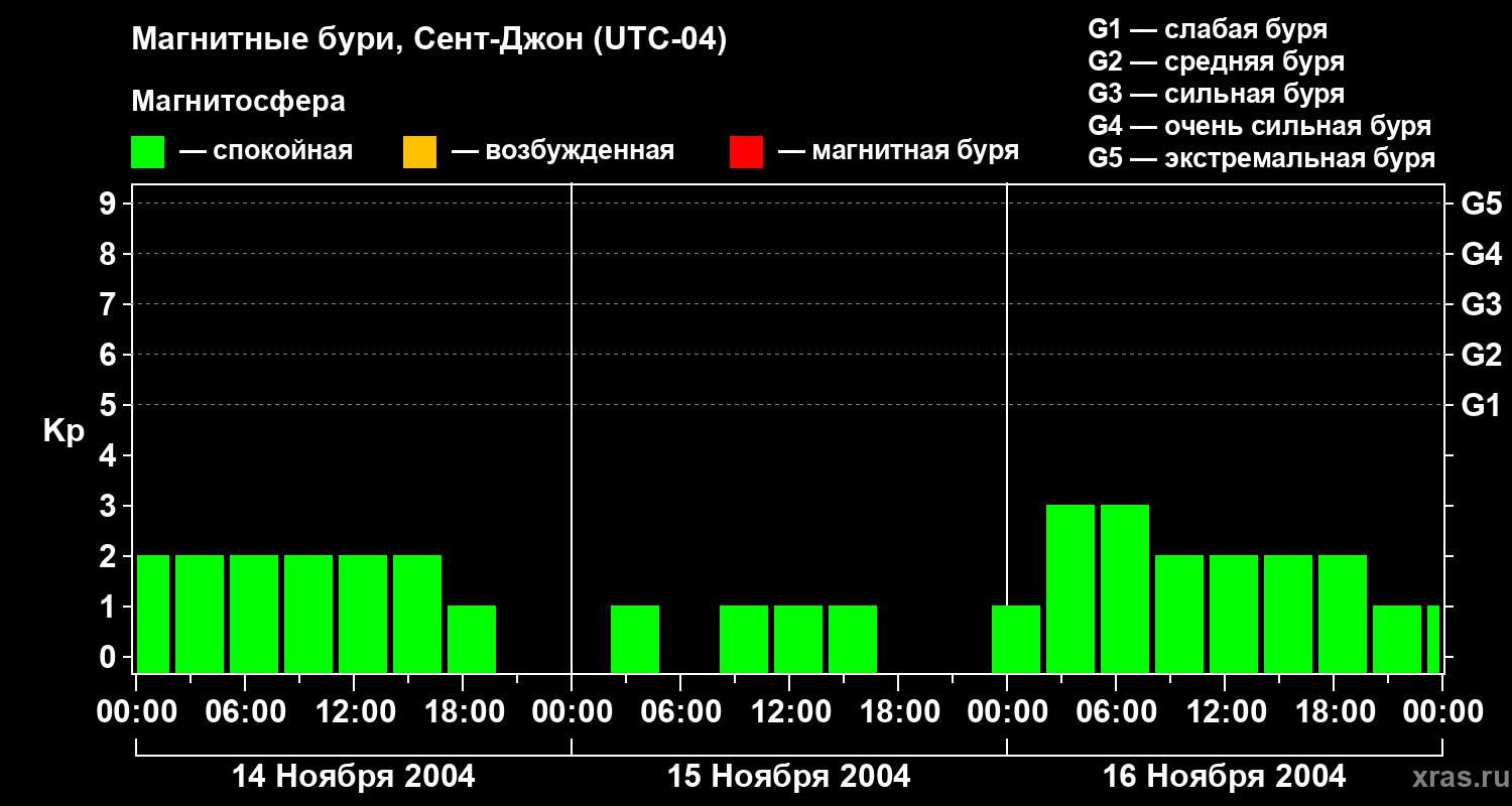 Магнитные бури в Сент-Джоне 16 ноября 2004 года