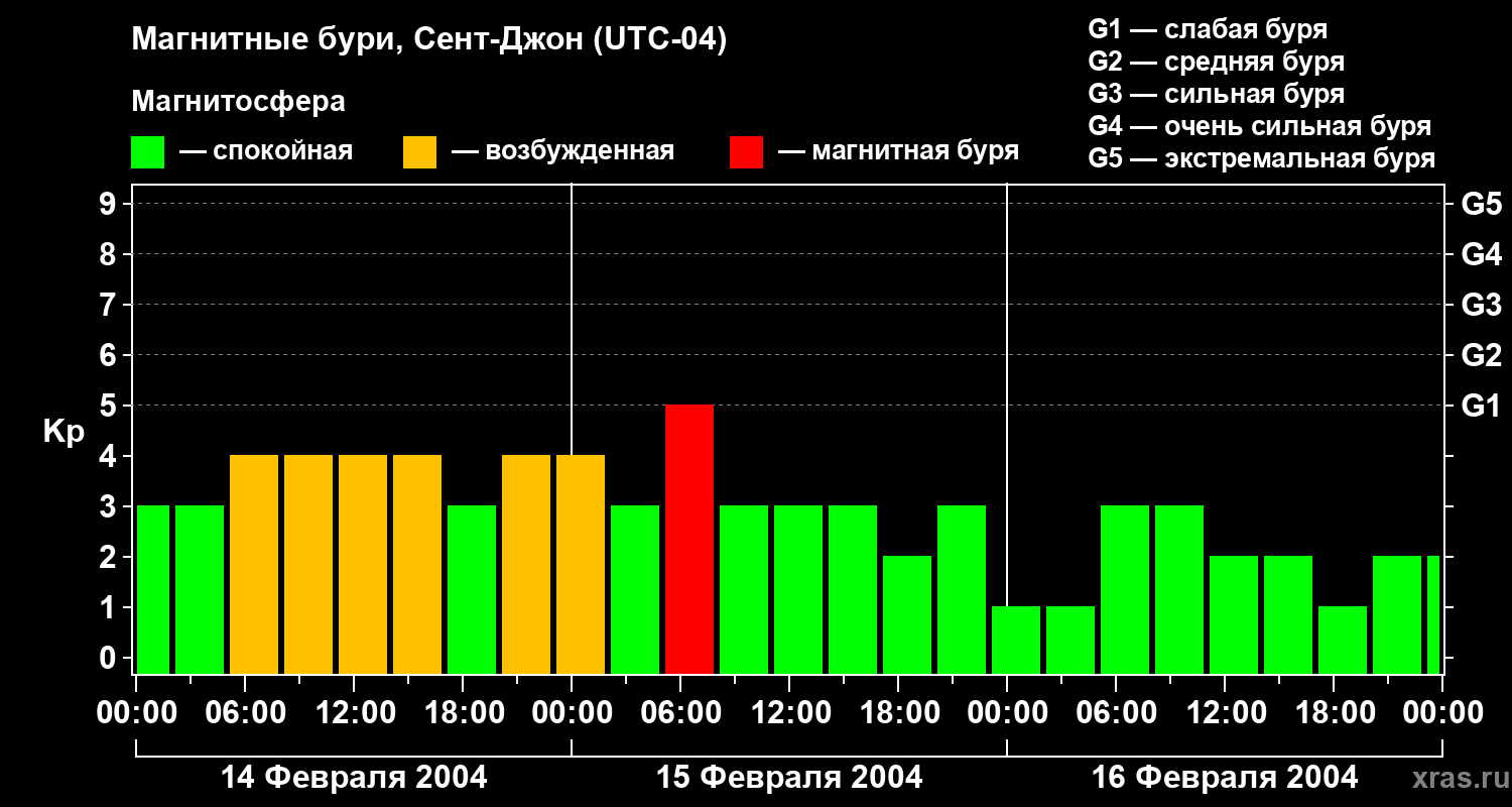 Магнитные бури в Сент-Джоне — 16 февраля 2004 года